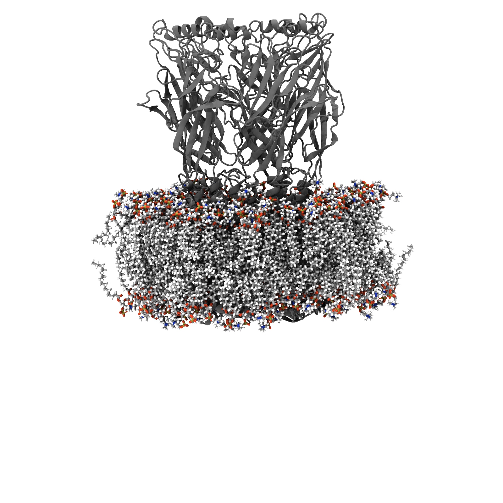 MemProtMD simulation of Human alpha4beta2 nicotinic acetylcholine receptor in a lipid bilayer at both coarse-grained and atomistic respresentation, including both file download and analysis. Classification based on PDB 6ur8.