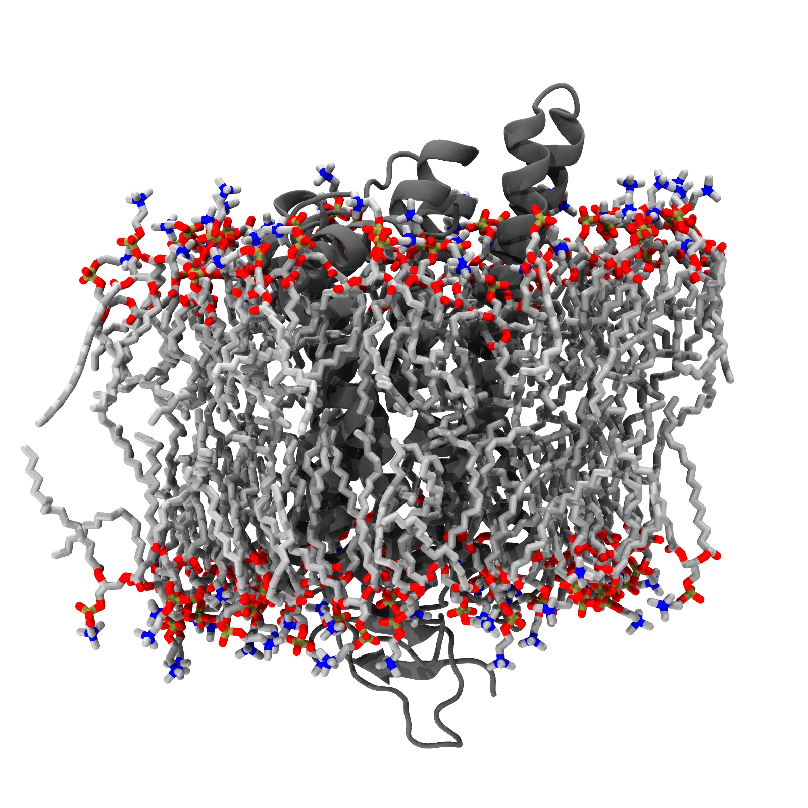 MemProtMD simulation of Active conformation of GPCR opsin stabilized by octylglucoside in a lipid bilayer at both coarse-grained and atomistic respresentation, including both file download and analysis. Classification based on PDB 4j4q.