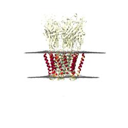 MemProtMD simulation of F14'A -N15'A double mutant of GLIC in a lipid bilayer at both coarse-grained and atomistic respresentation, including both file download and analysis. Classification based on PDB 5mvm.