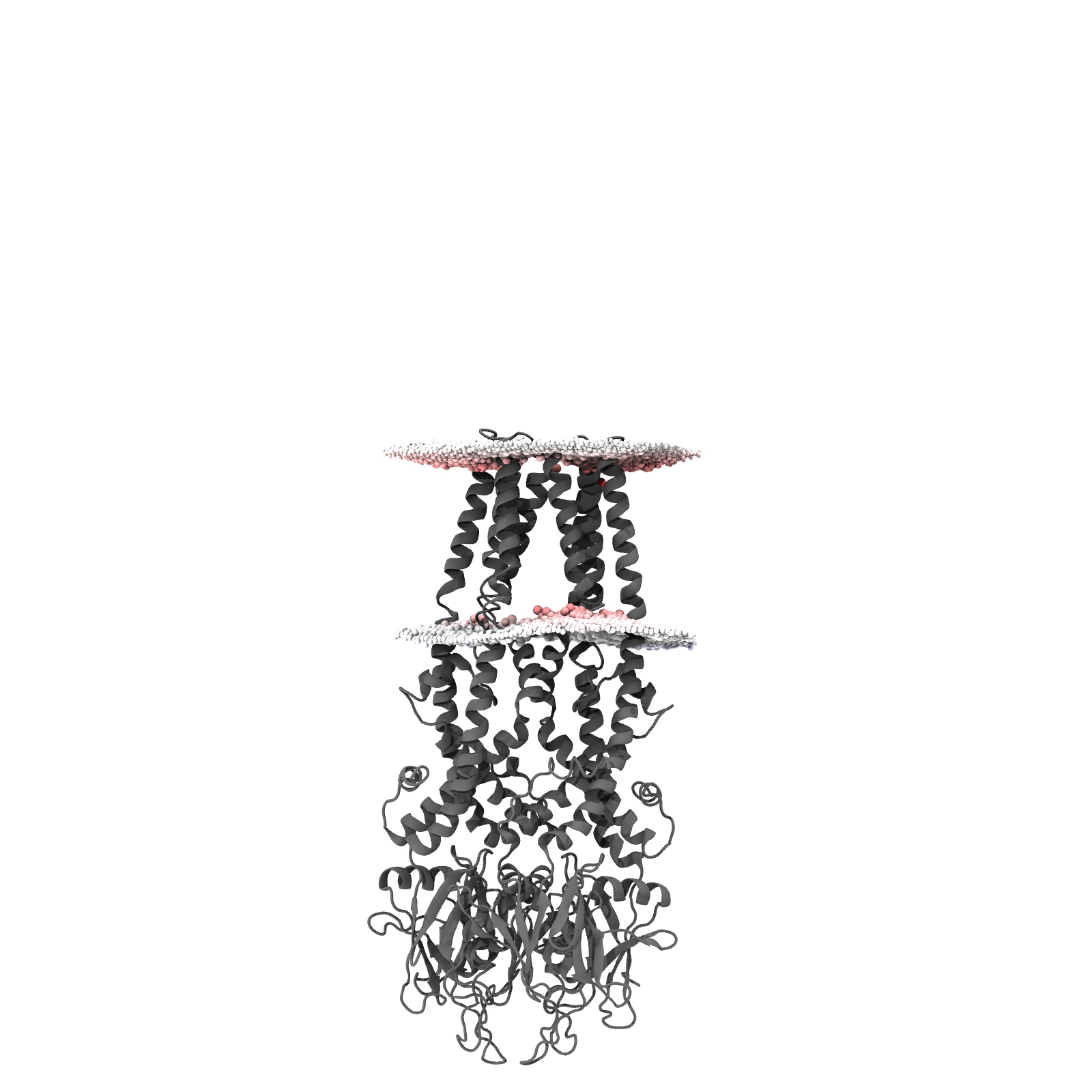 MemProtMD simulation of Mitochondrial calcium uniporter in a lipid bilayer at both coarse-grained and atomistic respresentation, including both file download and analysis. Classification based on PDB 6d7w.