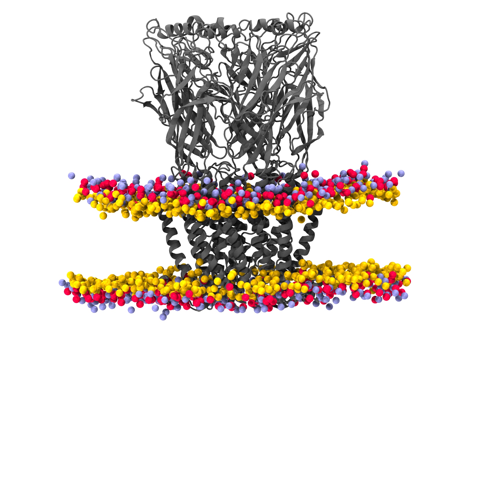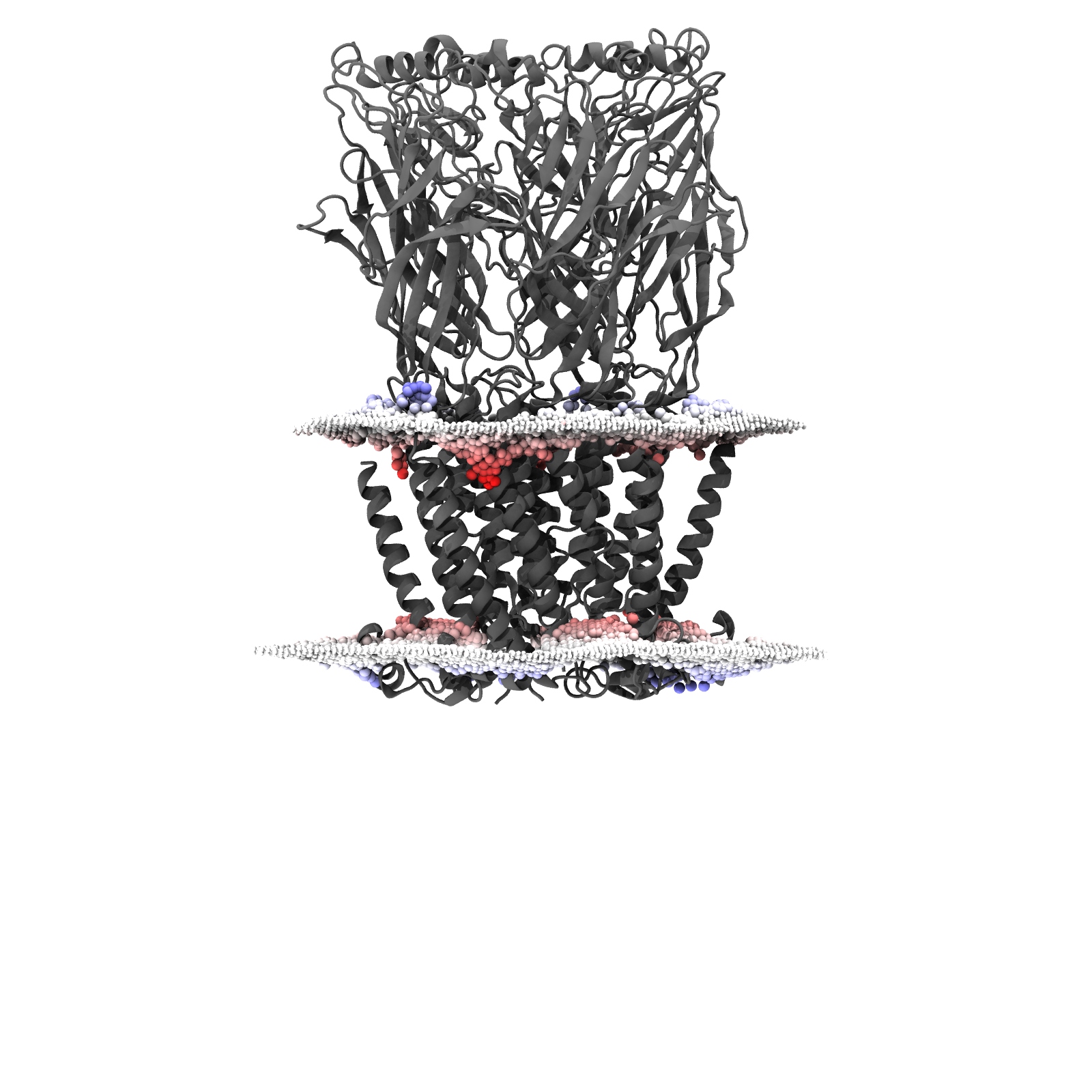 MemProtMD simulation of Human alpha4beta2 nicotinic acetylcholine receptor in a lipid bilayer at both coarse-grained and atomistic respresentation, including both file download and analysis. Classification based on PDB 6ur8.