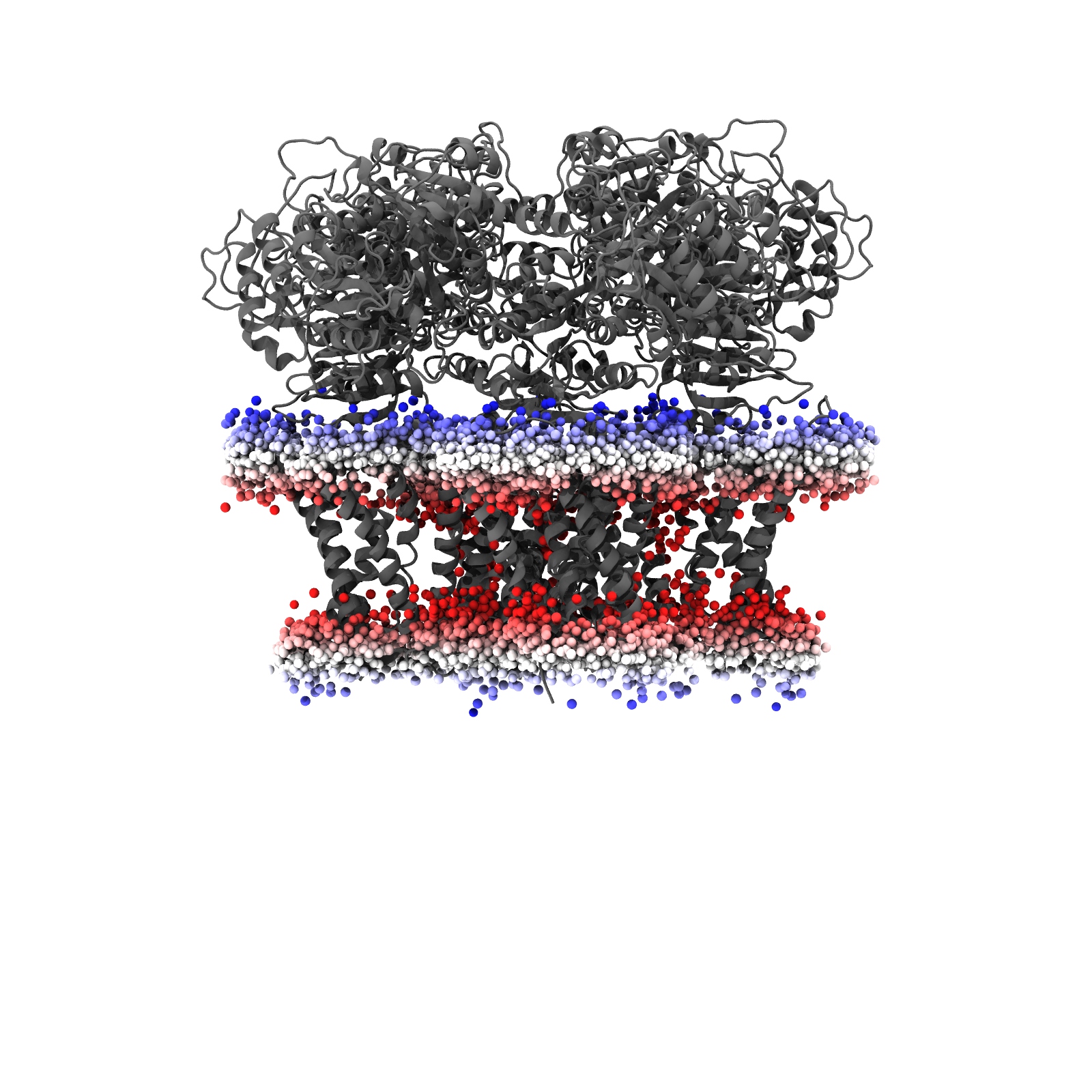 MemProtMD simulation of HSlo1 in plasma membrane vesicles in a lipid bilayer at both coarse-grained and atomistic respresentation, including both file download and analysis. Classification based on PDB 8ghf.